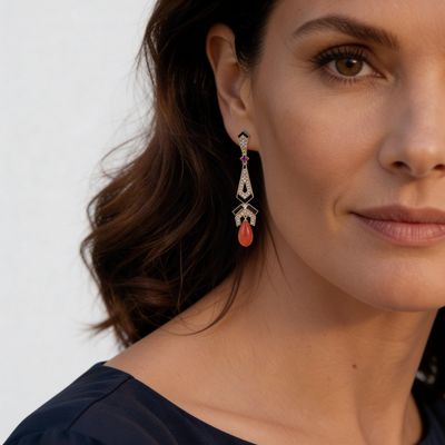 Orecchini Art Déco in oro 18 carati e diamanti dell'età dell